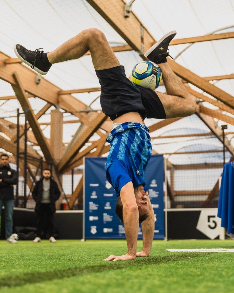 La journée s’est poursuivie avec une performance de haut niveau proposée par Jonathan Paul, champion de France 2018 de foot freestyle, qui a impressionné les participant.es avec une démonstration spectaculaire avant de partager un atelier « petit pont » avec les joueurs.